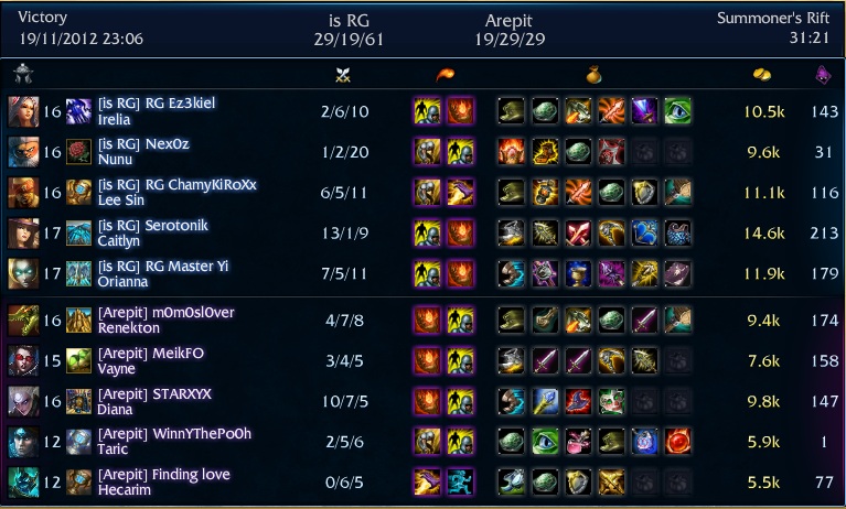 | RG.eu Team: | ChamyKiRoXx, ez3kiel, Serotonik, Nexoz, Maître Yi | ||||||||||||||||||||